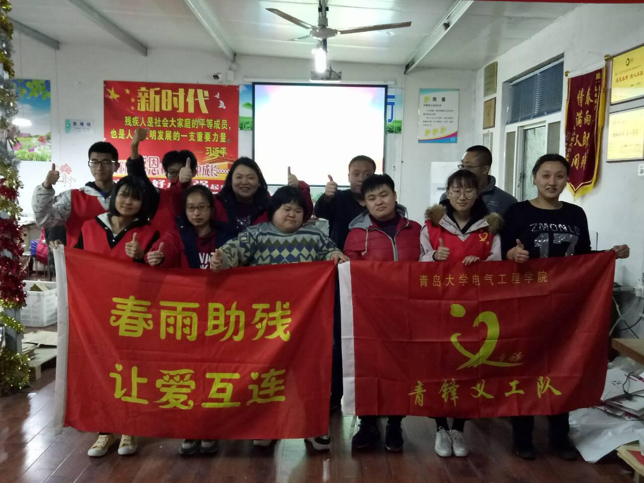2018年12月3日星期一世界残疾日,2007so太阳集团青年志愿者协会青锋义工队来到了青岛市春雨残疾人辅助性就业中心帮助残疾人们制作手工制品。参与活动有2007so太阳集团青年志愿者协会副部长郭帅、18级同学杨春晖、韦丽影、李明杰、石行蕴。在青年志愿者协会副部长郭帅的带领下,同学们有序地来到了青岛市春雨残疾人辅助性就业中心帮助残疾人,此次活动取得了圆满成功。