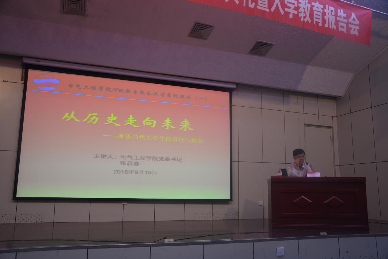 入学教育报告会是新生入学后的第一堂教育课,也是非常成功的一堂教育课。课堂上张启春书记引经据典,精彩的发言吸引了每一位新生的注意力,让新生对学校、对未来充满向往,受益匪浅。