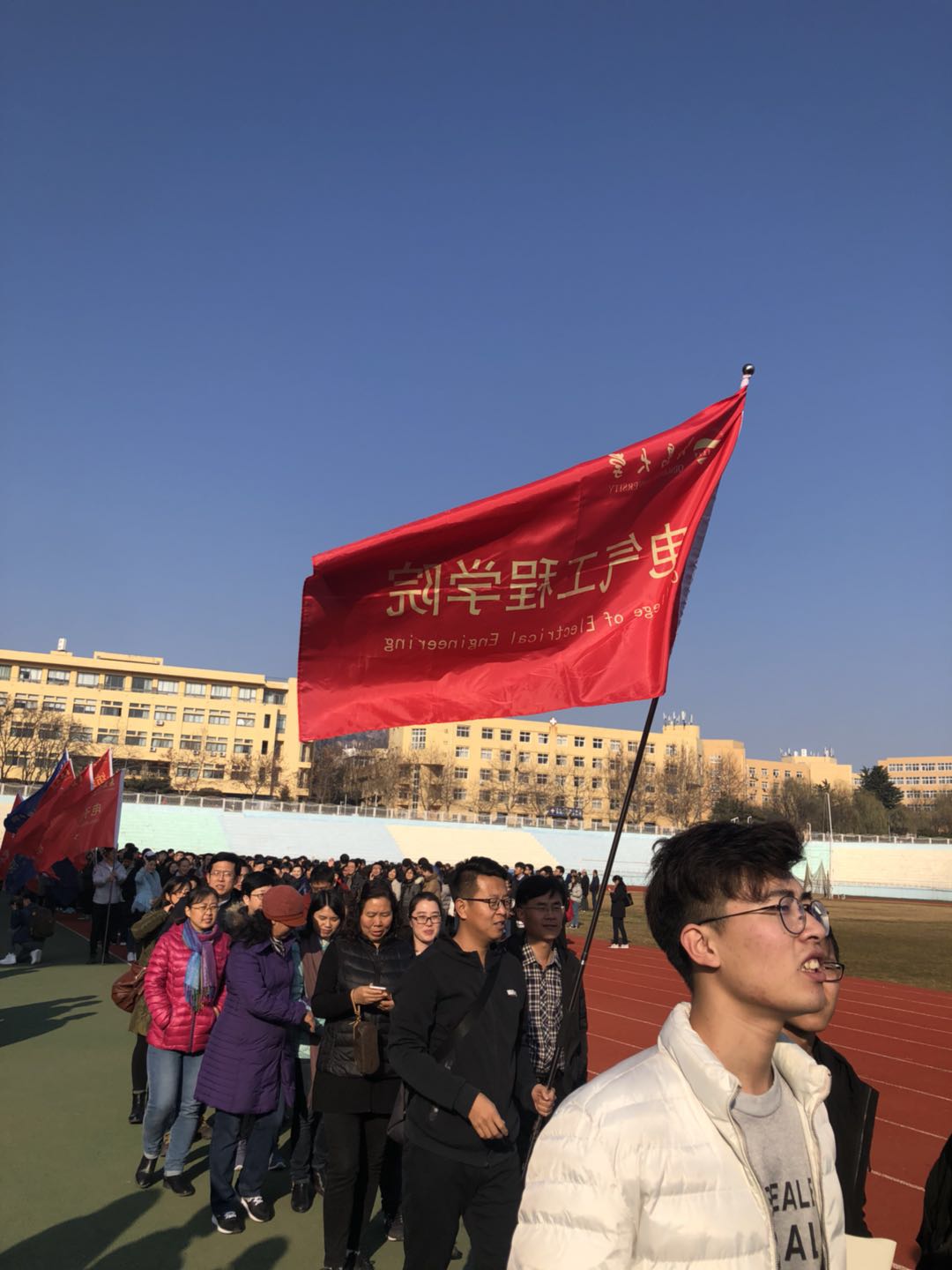 健步行活动从中心校区第一体育场出发,经国际交流中心、博远楼、东西院地下通道进入东院海月广场,最后到达第二体育场。各学院部门教职工有序前行,神采飞扬,现场气氛活跃。一路上教职工们有说有笑,有的还拿起手机不停拍照合影,在冬日阳光的沐浴下,长长的“人龙”形成了学校一道亮丽的风景线。大家一边快速行走一边交流沟通,既锻炼了身体,欣赏了校园美景,还营造了和谐友爱的氛围,促进了与同事之间的情感交流。学院教职工们纷纷表示,参加此次活动,身心感到了愉悦,培养了参与体育锻炼的自觉意识,增进了彼此的了解,增强了全校教职工的凝聚力和向心力。