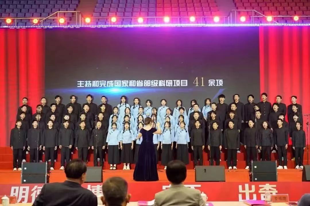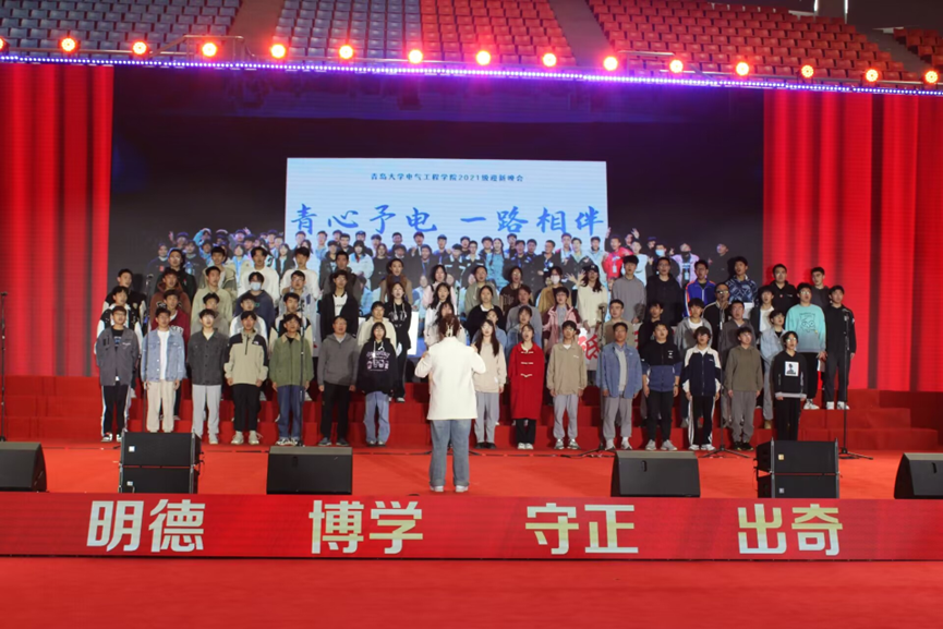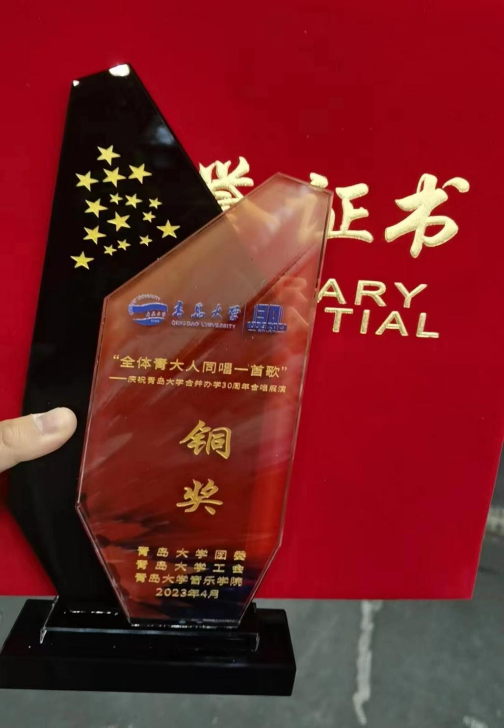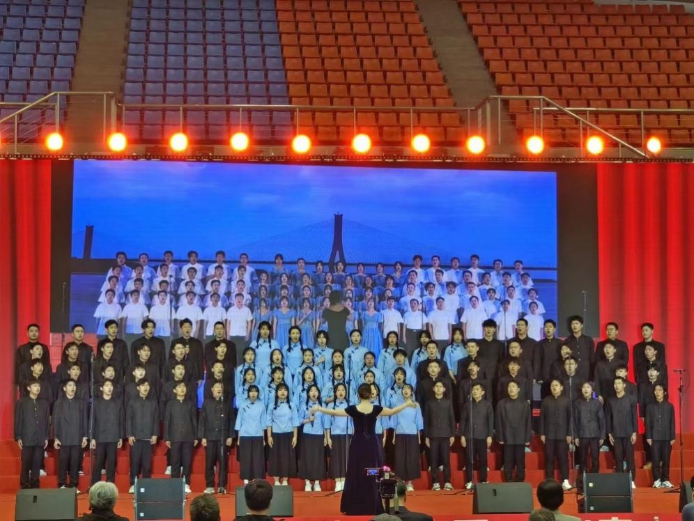 展演当天,伴随着国歌响起,老师和同学们昂起头,烁毅之目如火,随五星红旗升至杆顶。等待的过程中,大家兴奋地准备着,整理好衣装,平复好紧张的心情。待至台上站定,同学们自信洋溢,发出铿锵有力的电气之声。学院自选曲目《保卫黄河》,“风在吼,马在叫,黄河在咆哮!”庄严肃穆中,讲述着那段不屈抗争的历史,歌颂着前赴后继的英雄。音乐声戛然而止,而同学们的心情久久难以平复,咬紧牙关,对保卫祖国的战士们致以最崇高的敬意。经过激烈角逐,最终学院荣获铜奖,首创合唱佳绩。