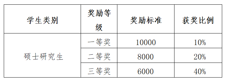 符合条件的二、三年级研究生参与评选优秀学业奖学金。奖励标准如下:(单位:元/年/人)