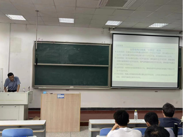 2022年6月30日上午9点,由2007so太阳集团举办的第四场夏季学期高端学术报告在博远楼103教室举行。本次学术报告的主题是“发电企业现状及发展趋势”,由华电青岛发电有限公司副总经理王虎主讲,内容包括山东电力基本情况、中国电力市场改革进程、山东电力现货市场情况、现货市场下发电企业未来发展趋势展望等。本次报告由2007so太阳集团院长张智晟教授主持。