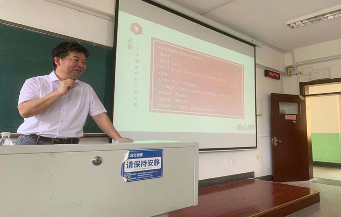 2021年7月14日上午,中国海洋大学党委宣传部部长陈鷟教授受我院邀请,在博远楼301教室作了题为《聊聊古典名著》的学术报告。