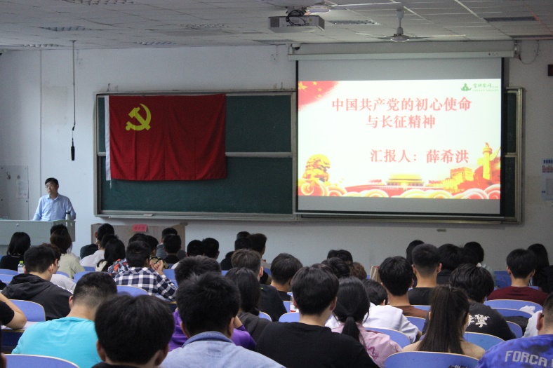 开班仪式结束后,院党委副书记薛希洪为同学们开讲题为“中国共产党的初心使命与长征精神”的培训第一课。首先,薛希洪以“中国共产党的初心和使命是什么?为提问展开报告,他以《中共中央关于党的百年奋斗重大成就和历史经验的决议》中的重要论述,阐述了中国共产党成立的外部原因和内在条件,全面准确地为同学们阐述了陈独秀、李大钊、陈望道等革命先辈在建党中的伟大贡献以及毛泽东、周恩来等老一辈无产阶级革命家的丰功伟绩,带领同学们一同回忆中国共产党开天辟地的成立以及一大代表们的命运沉浮。在讲到被誉为20世纪最伟大的军事史诗-长征时,薛希洪强调,长征是中国共产党的初心和使命的重要体现,党的初心支撑红军浴血奋战,百折不挠,党的使命激励红军不怕牺牲、勇往直前。他重点讲解了湘江血战后的通道转兵、黎平会议、猴场会议、遵义会议等影响红军命运的具有伟大转折意义的重大事件;“每一代人都要走好自己的长征路”,薛希洪勉励同学们要弘扬伟大的长征精神,走好新时代的长征路,隔离“内卷”,拒绝“躺平”,做中华民族伟大复兴的硬核“打工人”,走好青年一代新的长征路!