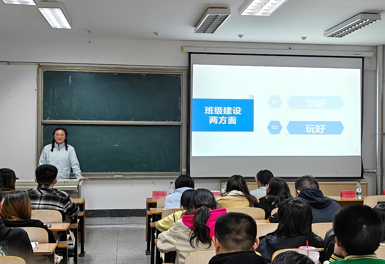 为加强学风建设,打造品学兼优、心系同学的学生干部队伍。目前已保研至山东大学的孙传莫琳,就自身的学习经验和班委在学风、班风建设的带头作用进行分享。她表示作为学生干部,既要“独善其身”,做好时间规划,提高学习效率,在学习上起到示范带头作用;又要“兼济天下”,主动带头建立良好的学风和班风,形成正向循环。此外,她认为可以组织团建活动、打破宿舍壁垒,加强同学间的联系,也可以在学科竞赛中加强交流,增强班级凝聚力。