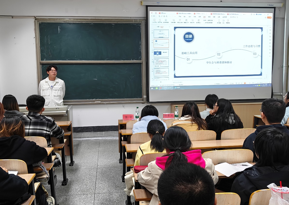 为进一步提升学生干部的综合素质,增强学生干部队伍的凝聚力和号召力,打造一支信念坚定、品学兼优、心系同学的学生干部队伍,为学院学生工作的高效开展奠定坚实基础。11月21日下午,学院举办“青风领航”学生干部素质能力提升培训班。院党委副书记薛希洪、团委副书记韩笑,高年级学生干部陈昊、孙传莫琳、邹程润以及学院第七届学生会成员及2024级本科新生班干部参加了会议。